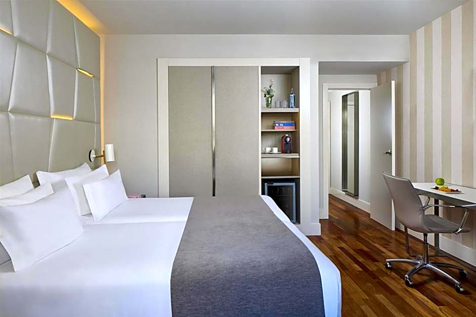 This spacious suite has a separate living area. It comes with a Nespresso machine, free water and a kettle, as well as a 46-inch flat-screen TV, free high-speed WiFi, and a laptop safe.